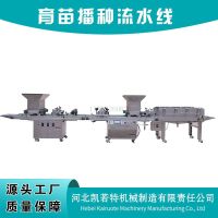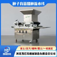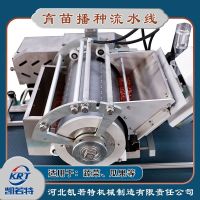 二,主要配置设备(详情见图一) 基质装盘、刮平、压窝一体机;滚筒式精量播种、回填、刮平一体机;两部分各一台。 三,基质装盘压窝机参数 机架:铝型材结构,箱体:不锈钢;单机重量:165KG 传动方式:输送带传动; 动力驱动方式:电机驱动,采用台邦电机3部,总功率:0.26KW, 光电感应器1组:品牌日本松下 压穴:滚轮式无动力压穴,采用组合分片调节式结构;材质:尼龙